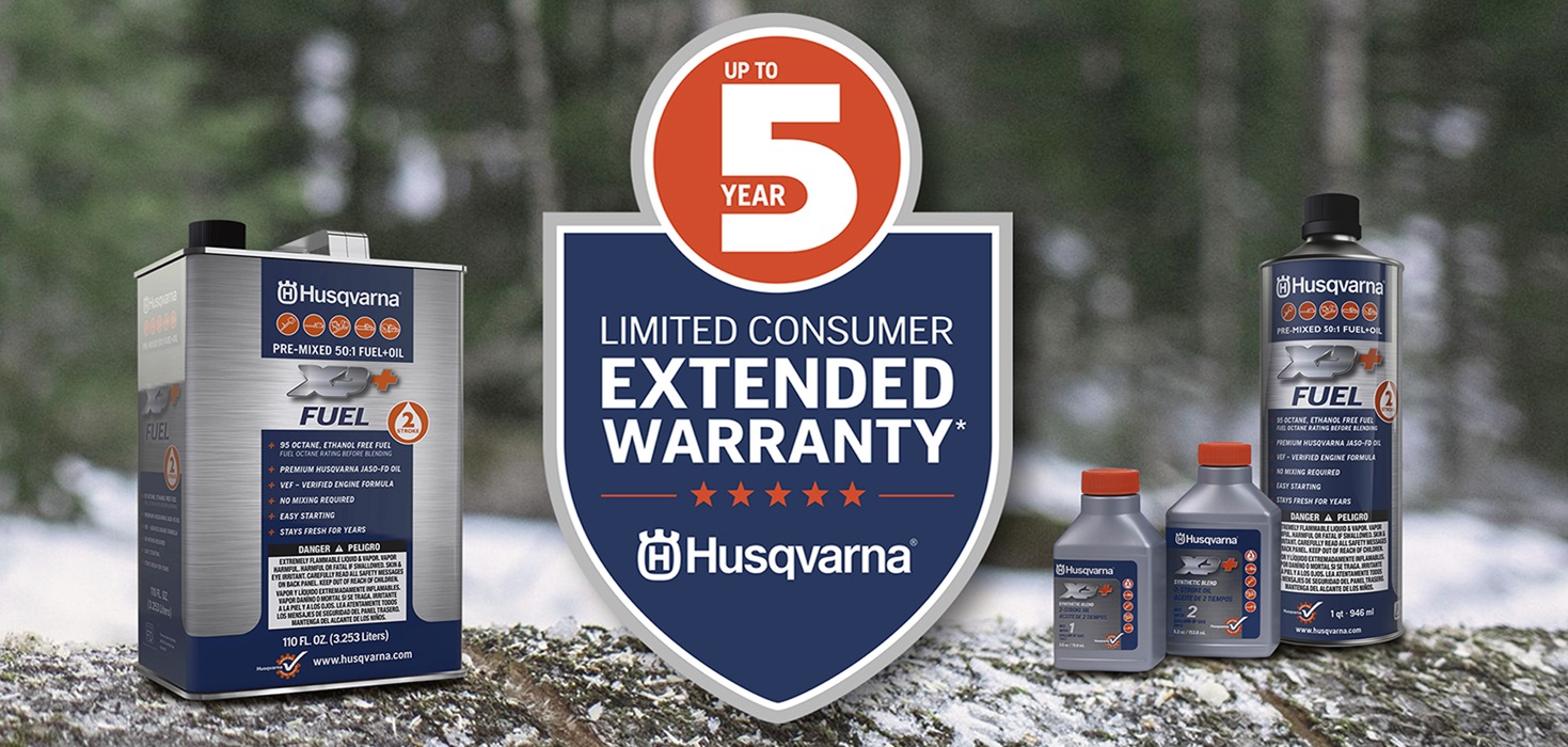 Consumers who purchase two-cycle gas powered Husqvarna branded handheld products can extend their warranty from the standard 2 years up to a 5 year warranty by purchasing Husqvarna brand 2-stroke oil or Husqvarna brand pre-mixed fuel.